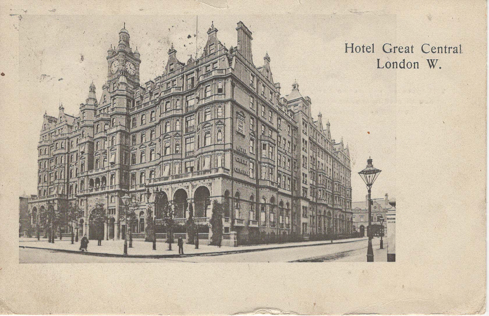 - Popis: Pěkný stav, odpovídá stáří. Stále v provozu, jmenuje se The Landmark a je na 222 Marylebone rd. Razítko není moc čitelné, ale pravděpodobně rok 1905.