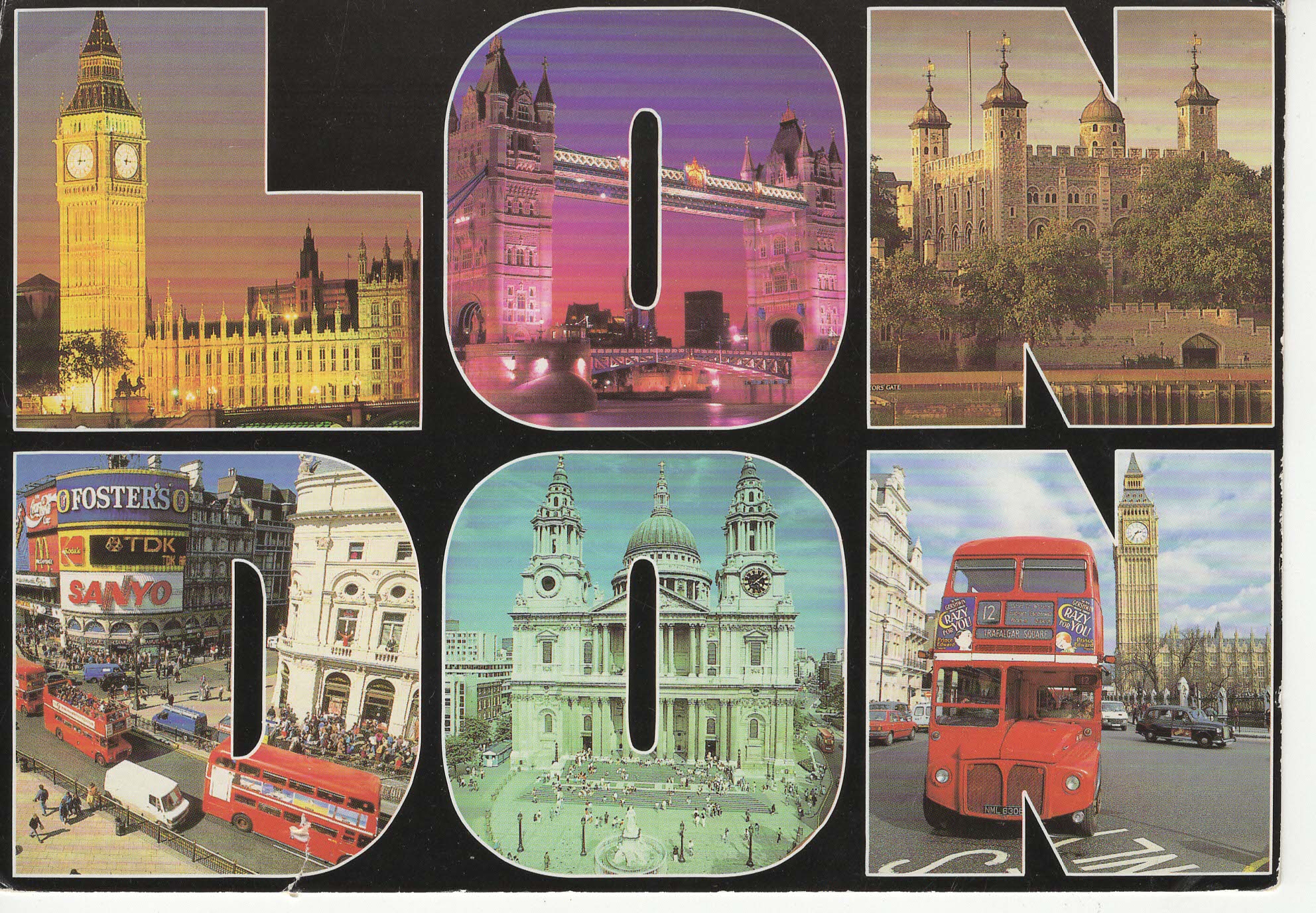 Pohlednice s okénky ve tvaru písmen LONDON