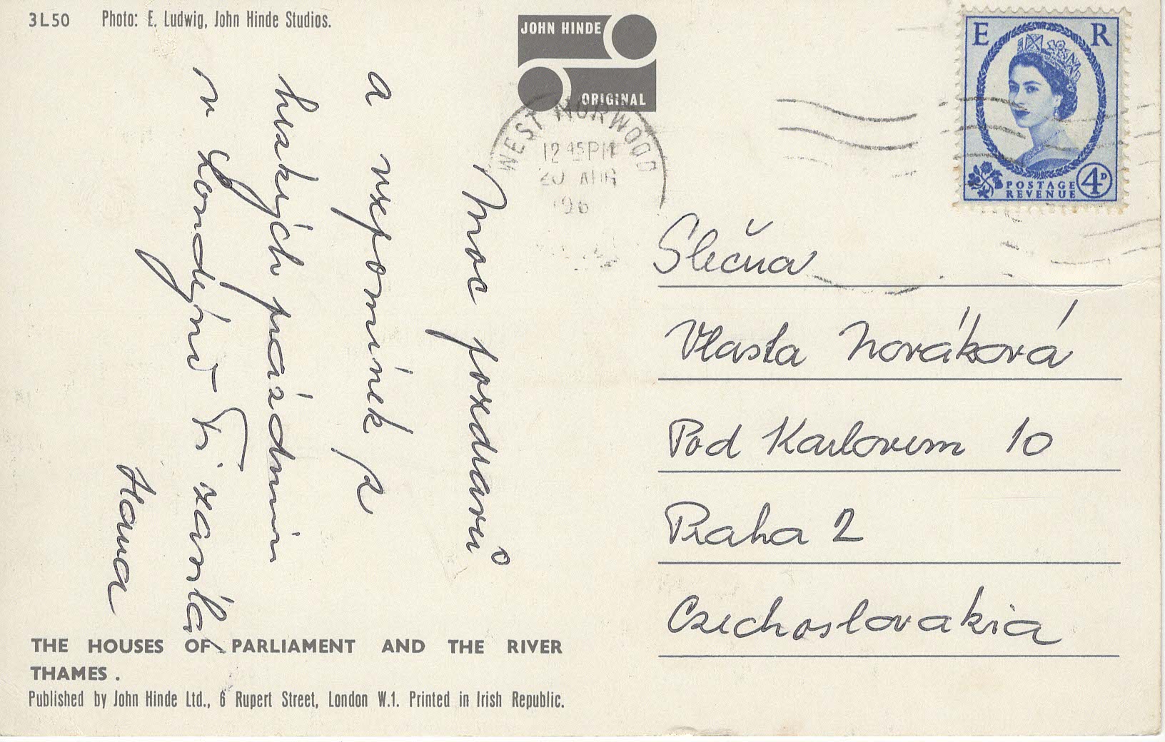 Poslední číslovka roku nejde přečíst, snad to nebylo 1968. Ve sbírce 2x, druhá je čistá, nepopsaná a v TOP stavu - jedná se o verzi s červeným erbem Westminster.