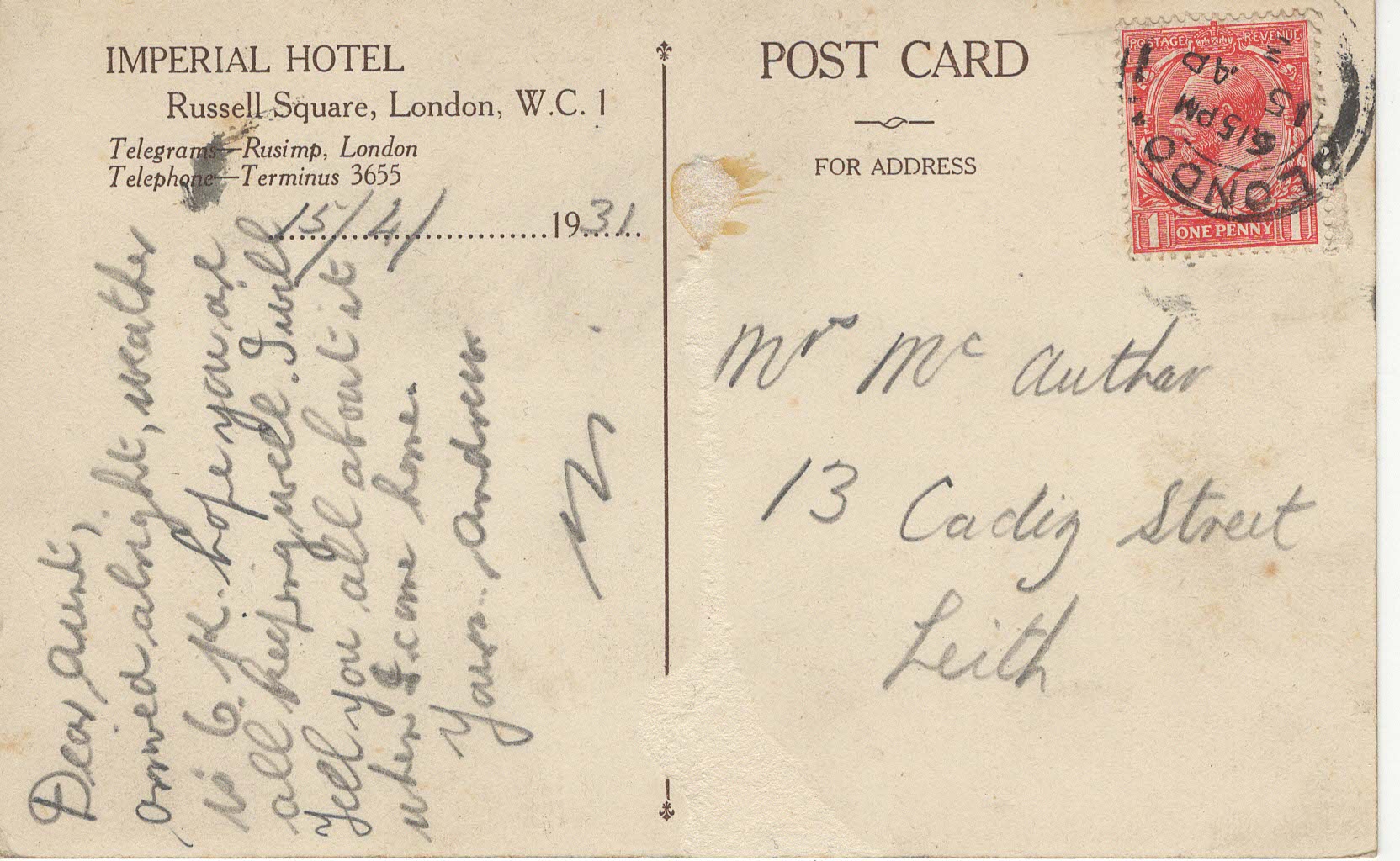 Imperial Hotel - Russell Square - 1931