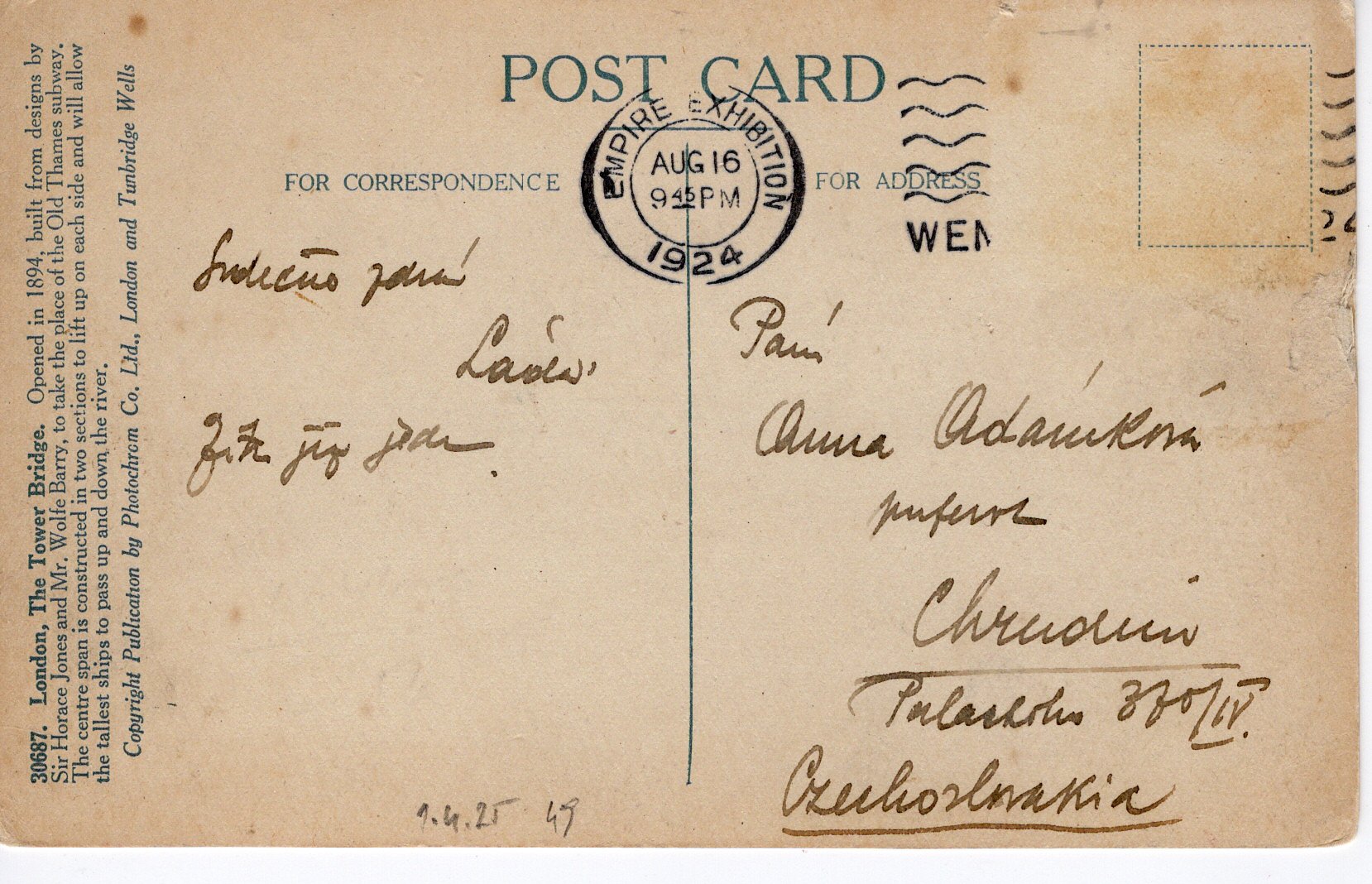 - Název položky: Tower Bridge . zvednutý - 1924