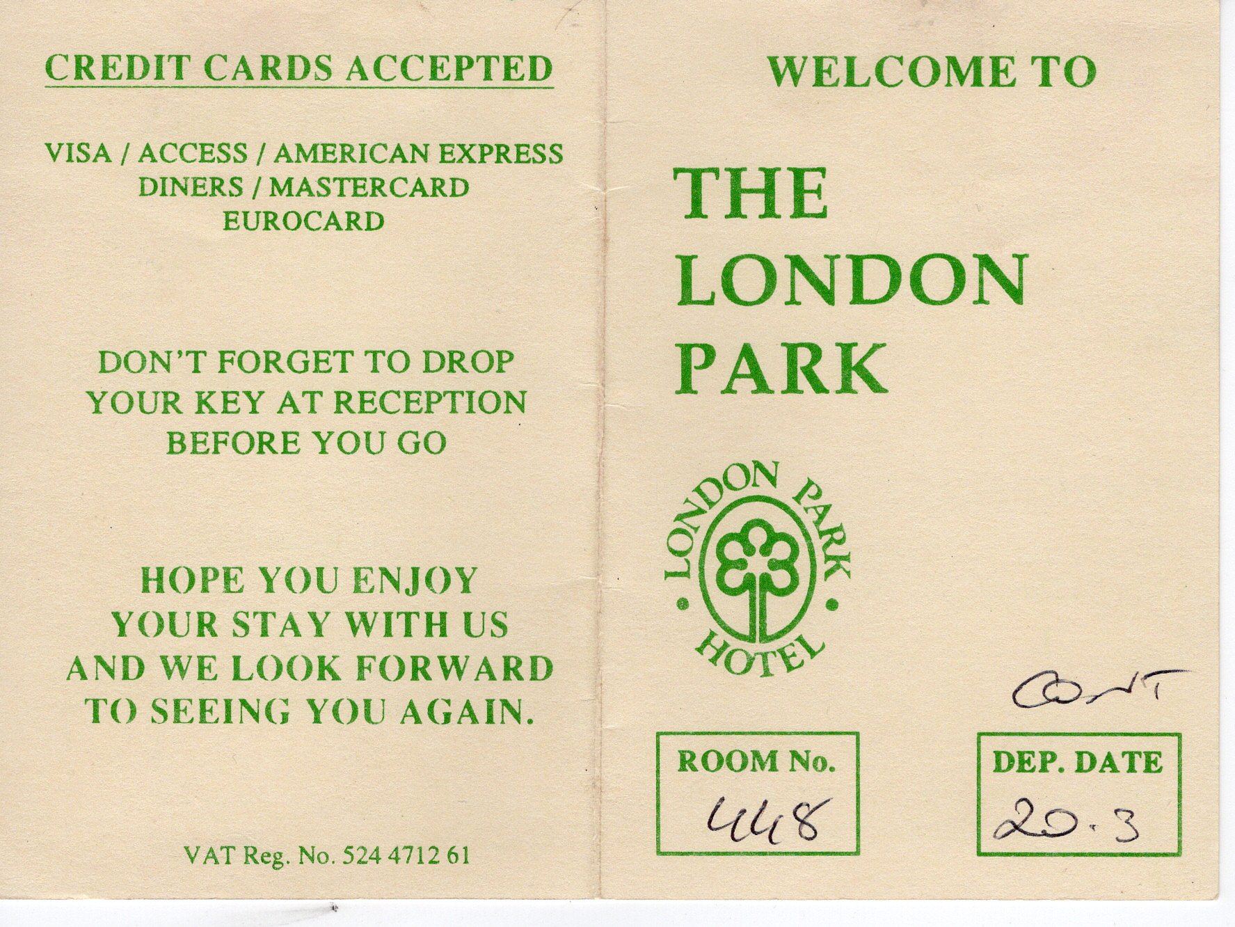 - Název položky: Karta z hotelu The London Park