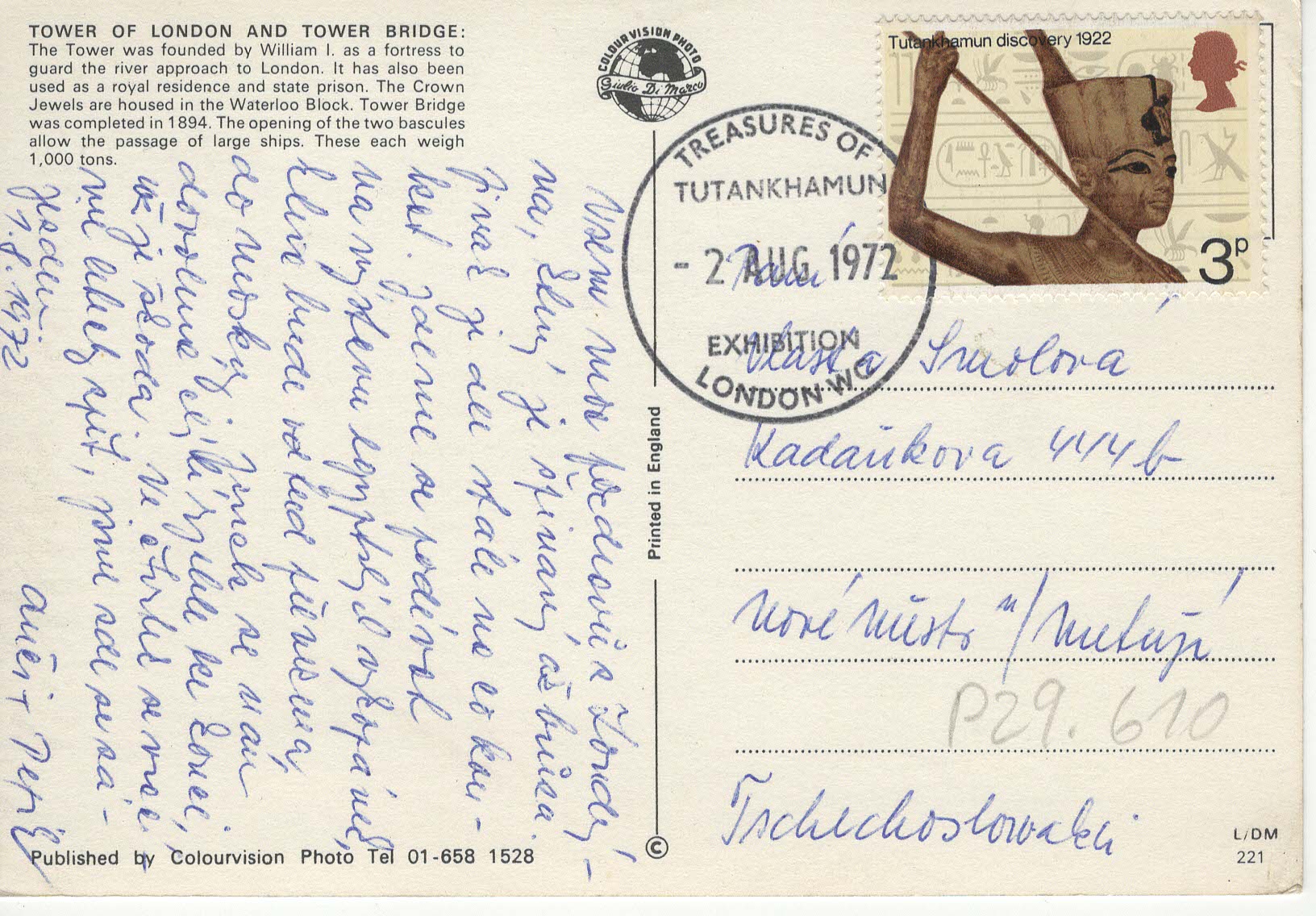 - Název položky: Tower of London a Tower Bridge - známka a razítko z výstavy Tutankhamun