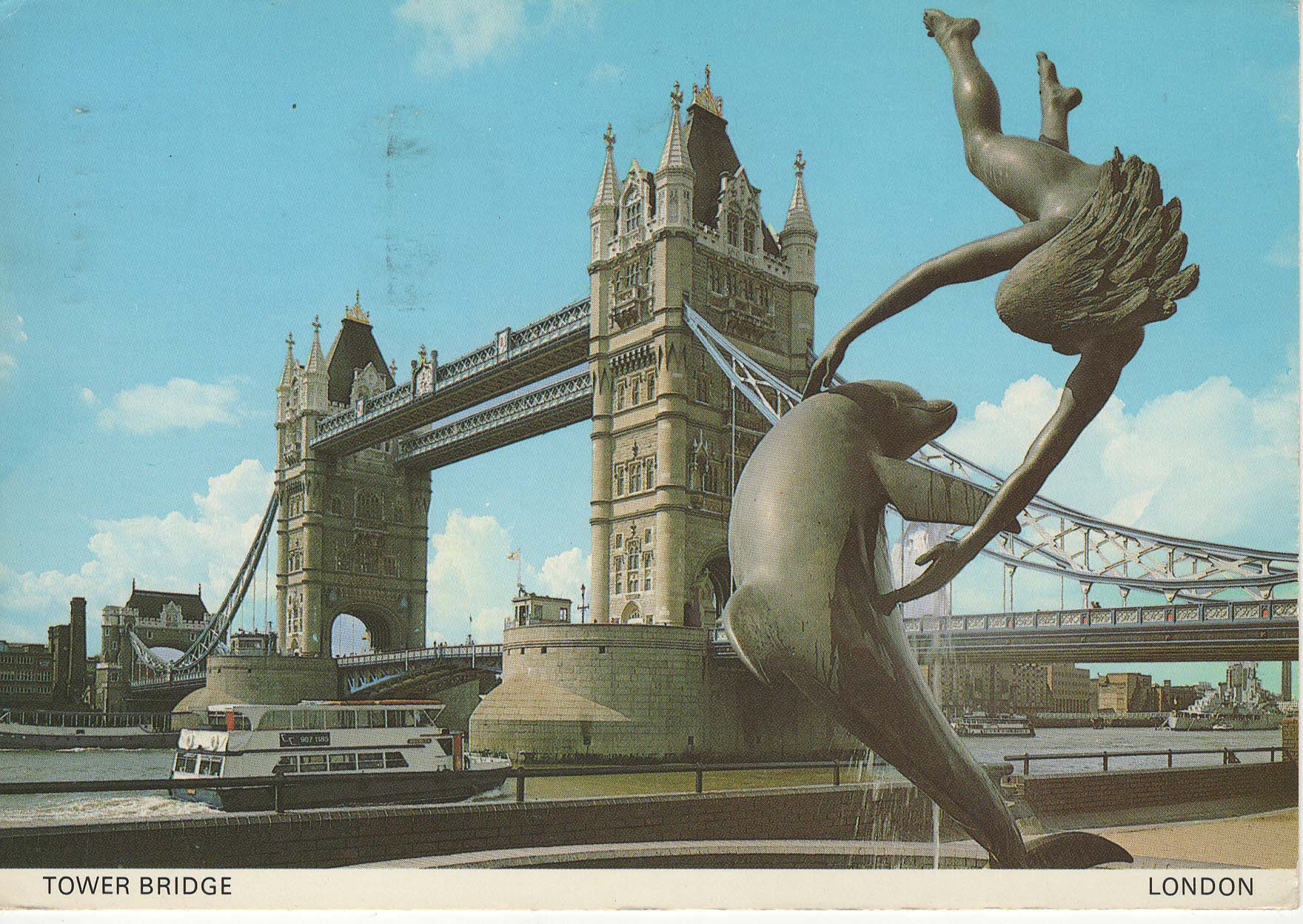 Tower Bridge a socha delfína s dívkou - 1985