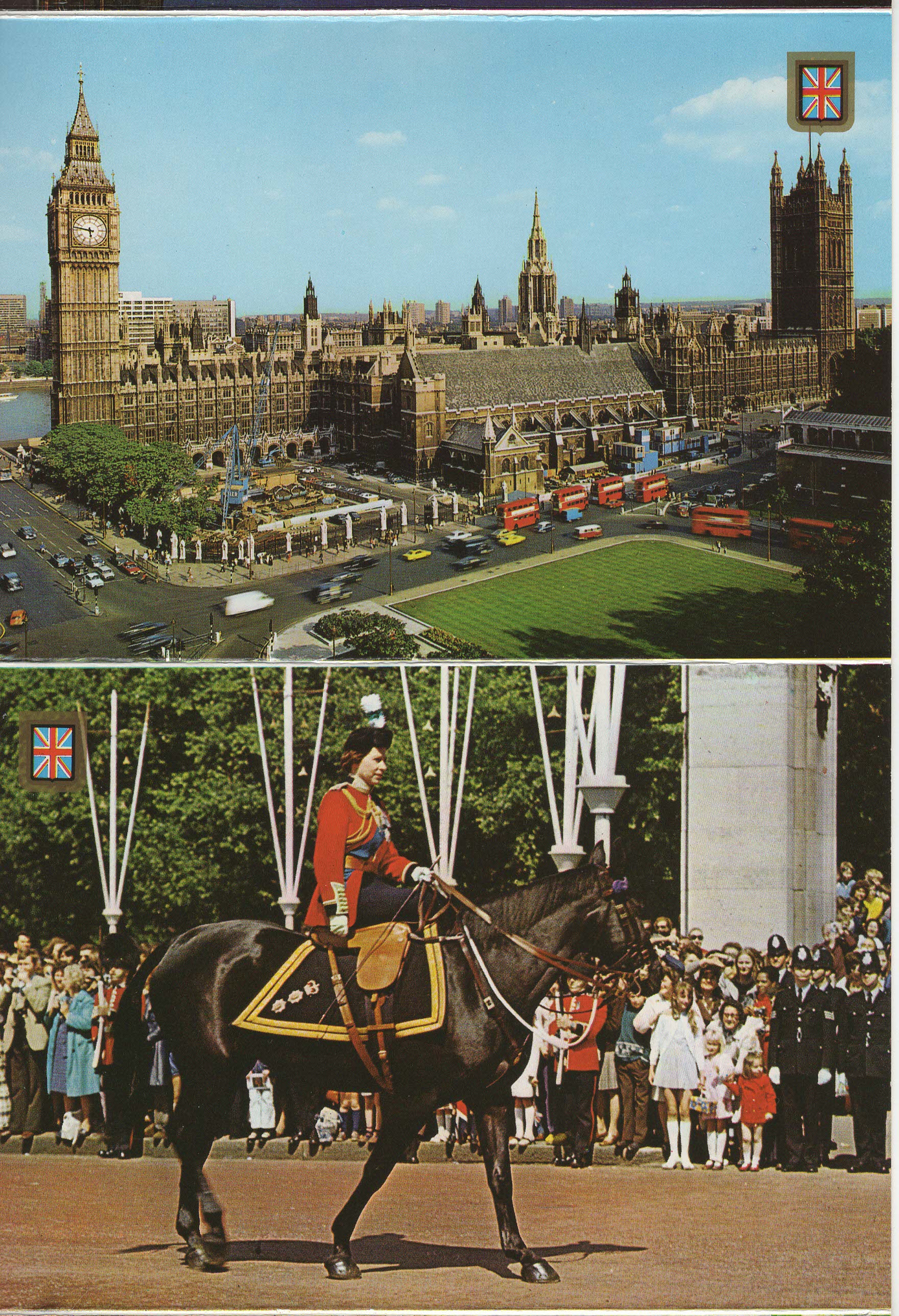 - Popis: Soubor 10 pohlednic, neposlané a ve výborném stavu. Královna na koni je na scanu 2x, ale v kolekci je pouze jednou. Úvodní pohlednici mám ve sbírce s datumem odeslání v roce 1985, proto řadím do 80. let.