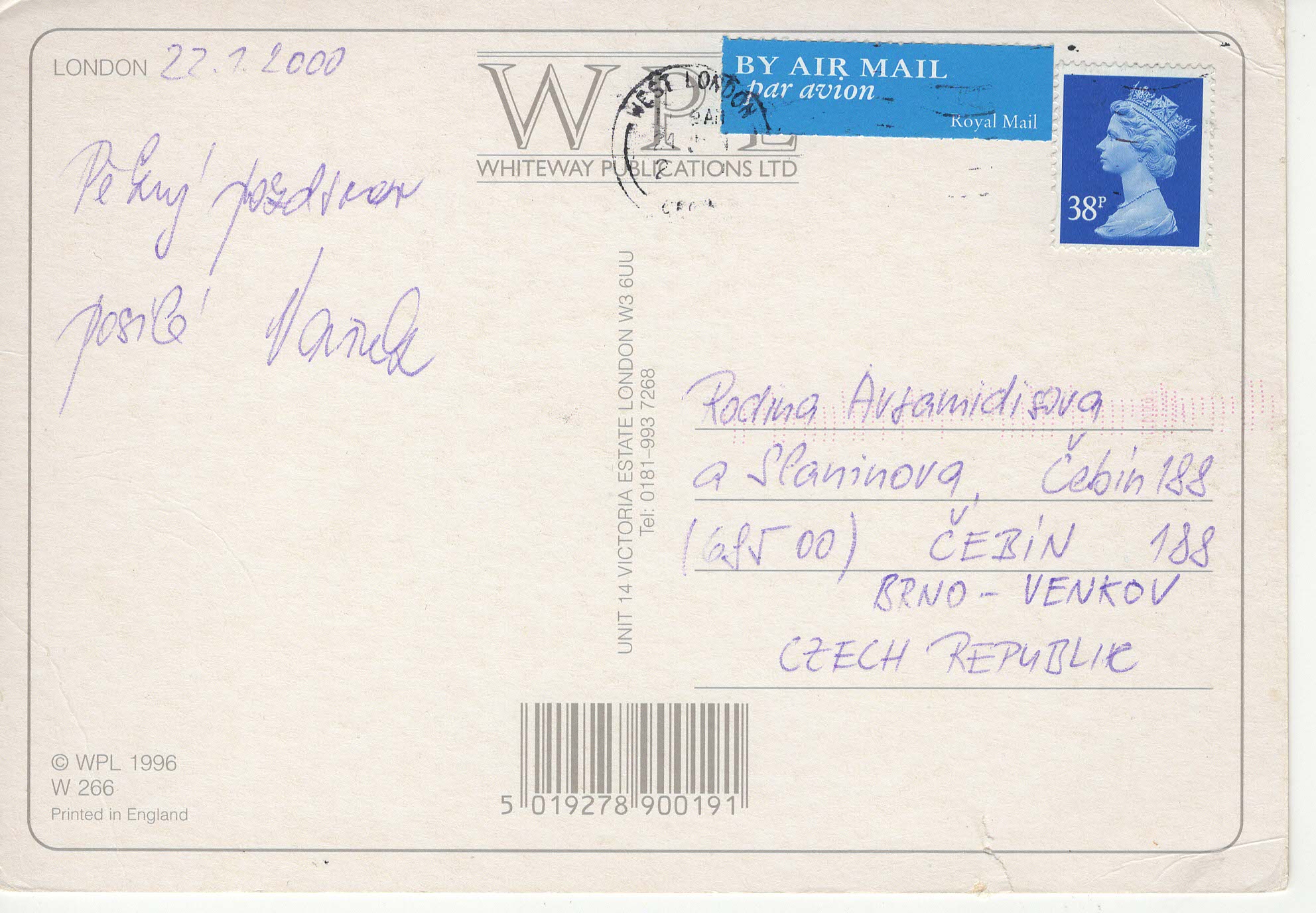 - Známka: Ano, modrá 38p s královnou