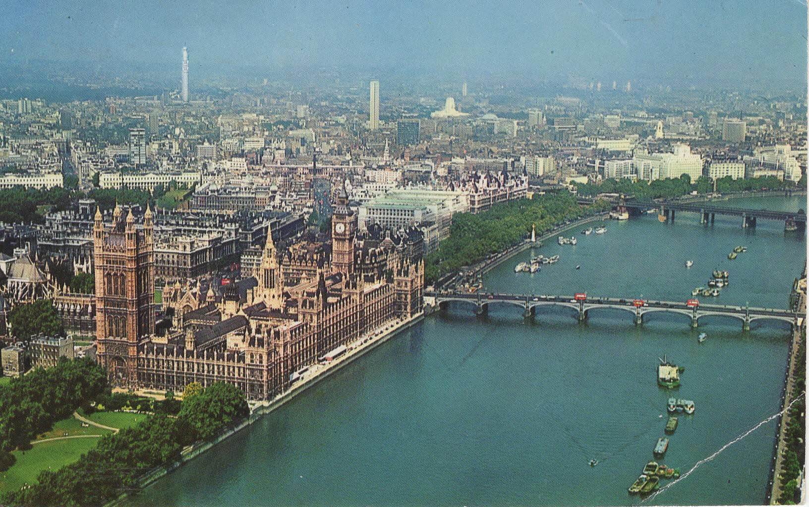 Letecký pohled na řeku a parlament - 1967 a 1978