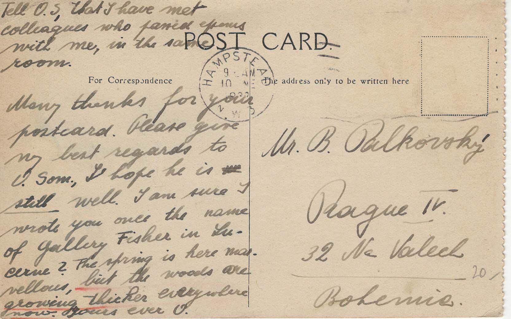 - Popis: Příjemce je pravděpodobně spisovatel Břetislav Palkovský, který během války pracoval v Londýně.
