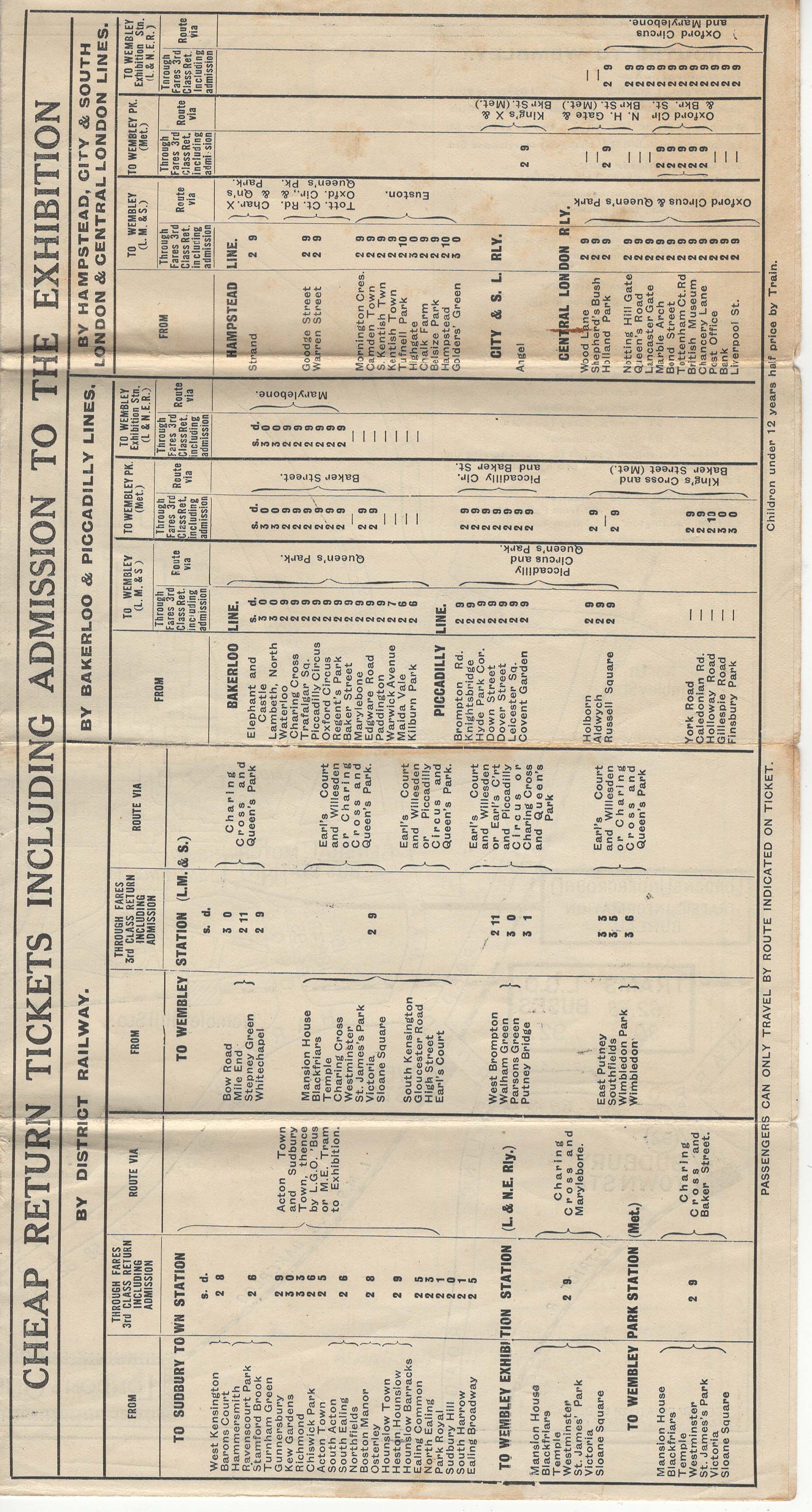 - Popis: Mapa areálu British Empire Exhibition + informace o dopravě, odjezdech a cenách jízdného